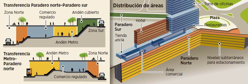 instalación subterránea con conexión directa al metro y el paradero sur se