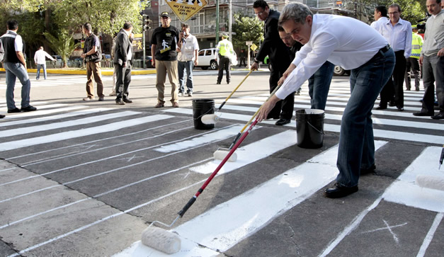 Si uno ve la foto de arriba, lo que uno podría pensar es: «Mira, un gobernante (Mancera) pintando un paso peatonal, para mejorar la ciudad. Al fin hace su trabajo.» Pero esta escena que da placer a la ciudadanía, enmascara la falta del gobierno de dar mantenimiento a la señalización vial para el peatón, lo cual es perverso. Si todos estuvieran bien ¿Por qué habría de realizar esta acción Mancera? ¿Por qué tendría que ser mediática? Y con un mínimo de vergüenza ante esta falta tan básica, el gobierno simplemente estaría trabajando en solucionarla sin anuncio alguno. Que el jefe de gobierno este pintando un paso peatonal para anunciar acciones de gobierno debe verse como algo ridículo.