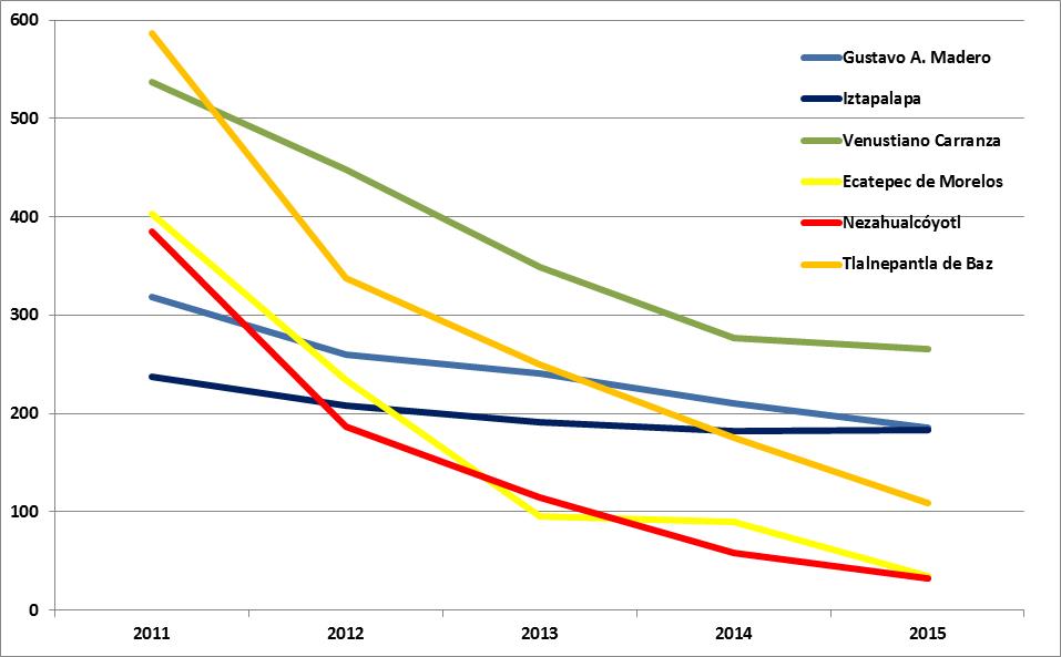 menos en el periodo 2011-2015, de las cuales 45% corresponden a Ecatepec de