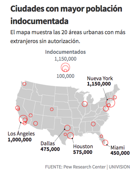 “Estas son las ciudades con más inmigrantes indocumentados en Estados Unidos”.