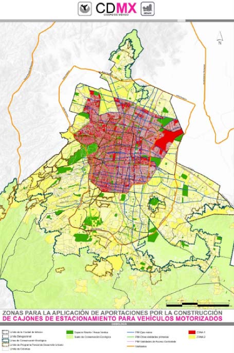 Zonas para la aplicación de aportaciones por la construcción de cajones de estacionamientos